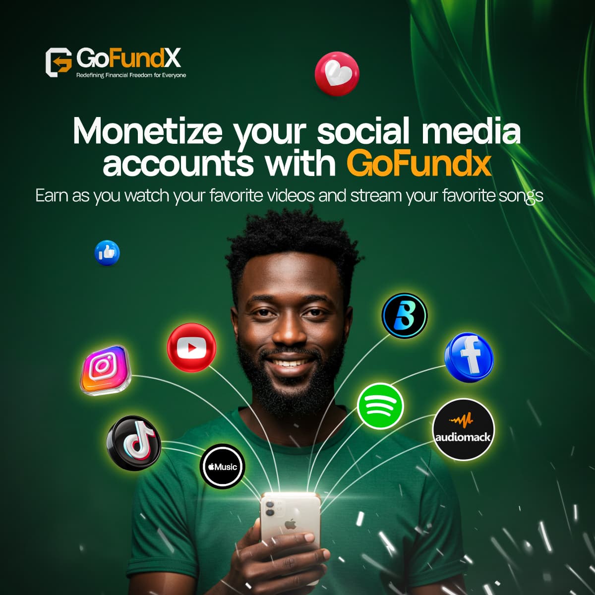 Monitization of your social media handles; I.e Facebook, Instagram, TikTok, X, Snapchat, earn as you watch your favourite videos, reels, posts, etc.