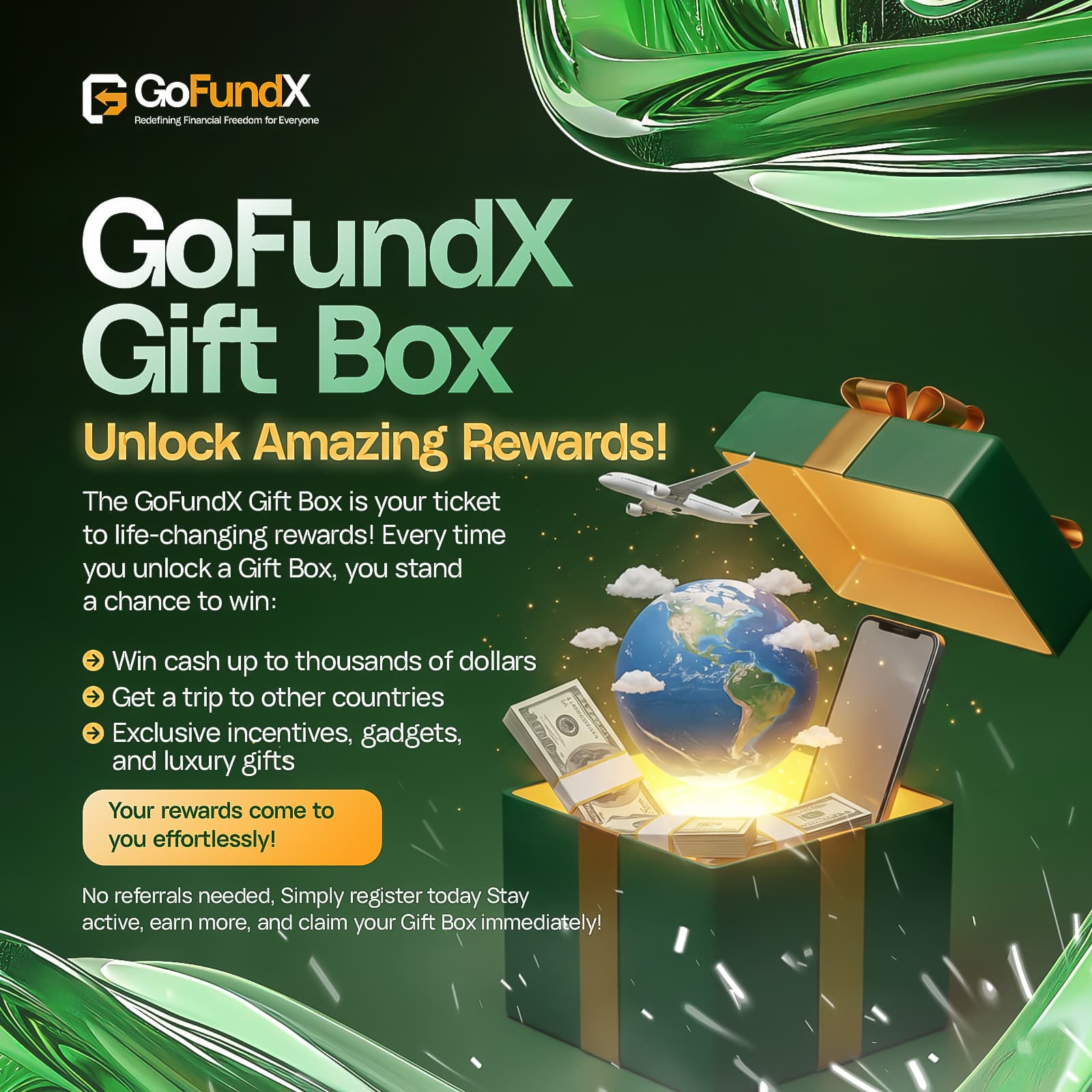 Unlock Amazing Rewards! The GoFundX Gift Box is your ticket to life-changing rewards! Every time you unlock a Gift Box, you stand a chance to win